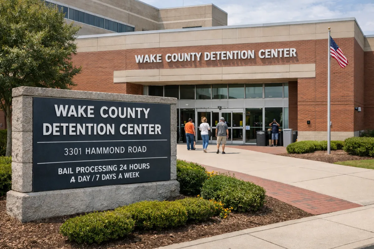 Every arrest in Wake County goes through one place: the Wake County Detention Center at 3301 Hammond Road, Raleigh, NC 27610. It does not matter if the arrest happened in Cary, Apex, Garner, or Wake Forest — they all end up here.
